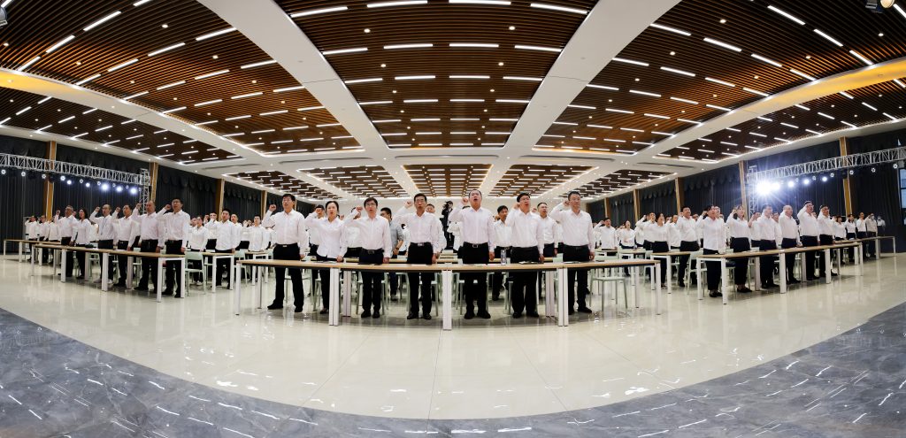 龙宏欣表示,截至目前2021年订单相比往年实现翻倍,公司又恰逢上市关键期,形势异常严峻。“咬紧牙关,突出重围”是OD体育人的必然选择;全体中高层领导要以身作则,以高度的责任心和使命感立足本职工作,敢于担当,切实履行主体责任;全体OD体育人要保持充分的热情和激情,勇于拼搏,艰苦奋斗,确保全面打赢这场攻坚战! 在常务副总经理谢保华的带领下,全体参会人员举起右拳,庄严宣誓!