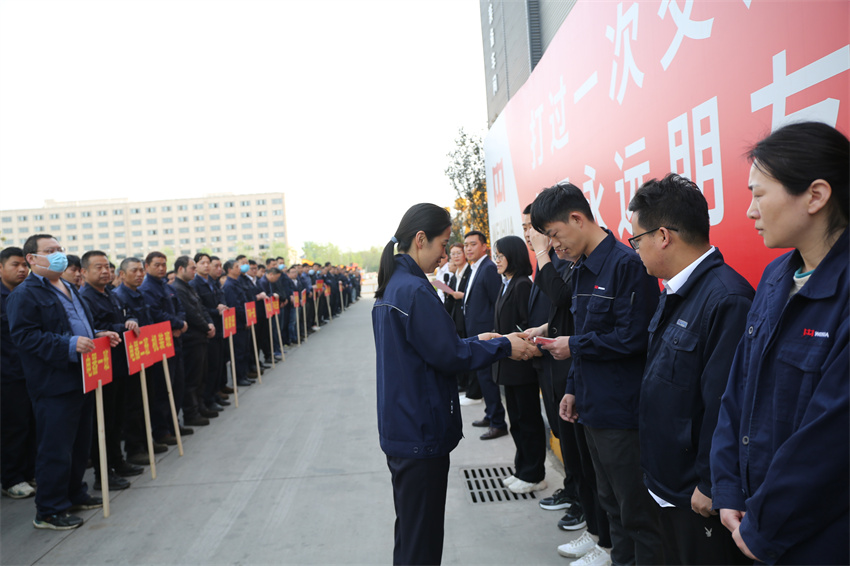 为切实增强全体一线员工质量安全工作的使命感、紧迫感和责任感,努力开创公司高质量发展新局面,2023年4月19日,河南OD体育重型机械股份有限公司召开2023年一季度质量安全奖励大会,执行总裁谢保华,质量安环中心总监钮鹏超,制造管理中心副总监代艳云、孙朋,以及生产系统各部门负责人和全体一线员工参加会议。会议由质量安环中心副总监王爽主持。