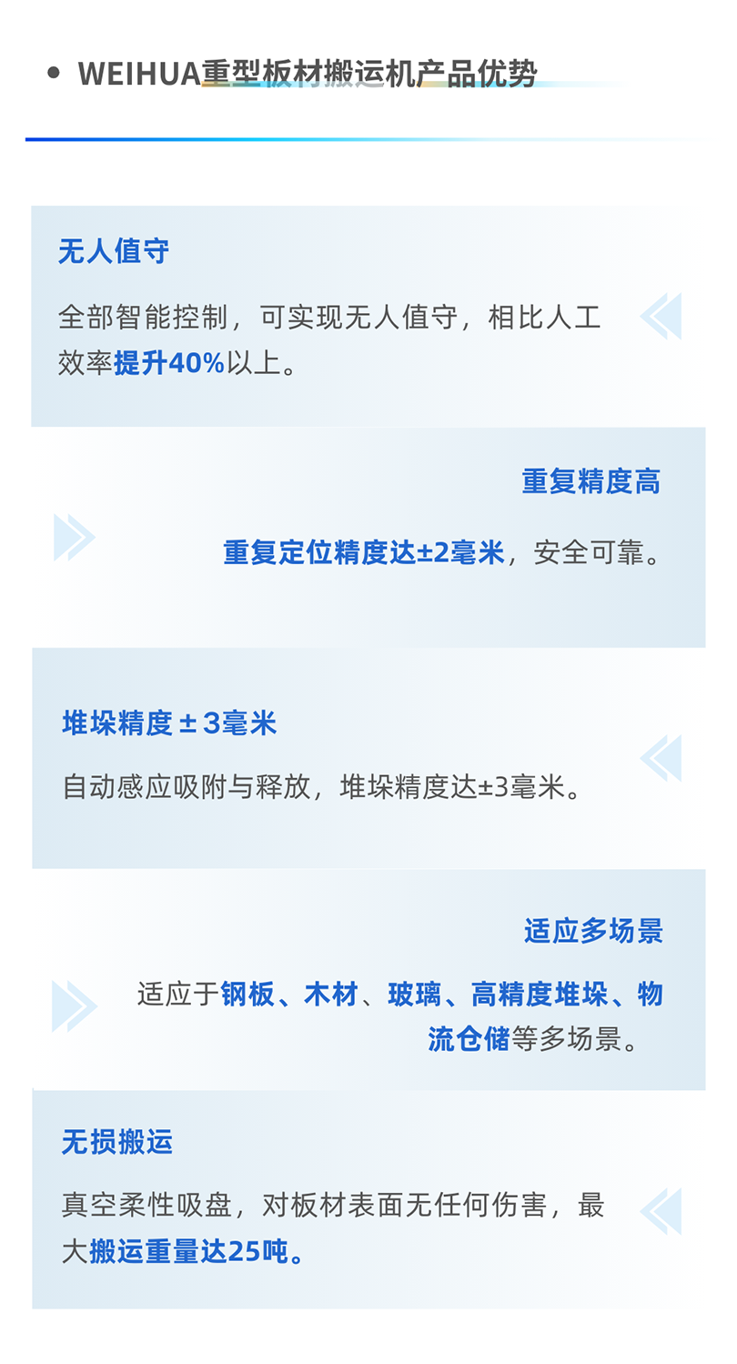 新产品将数字孪生、AI控制算法、人工智能、虚拟传感等技术与起重产品充分结合,输出了重型空间机器人、重型板材搬运机、多对多远程控制系统等多个智慧搬运方案,解决了客户成本控制难、生产效率低、环境恶劣、维保困难等诸多痛点和难点。
