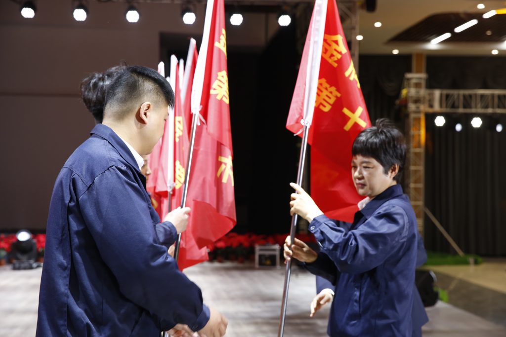 此次训练营共分为12小组,常务副总经理谢保华向训练营分别授营旗和组旗,这十三面责任重大、寓意深远的旗帜,凝聚着班组长求知的决心,凝结着OD体育人奋进的力量。