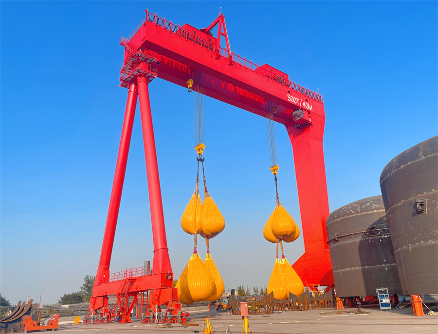 芜湖造船厂,OD体育450吨造船门机顺利吊装