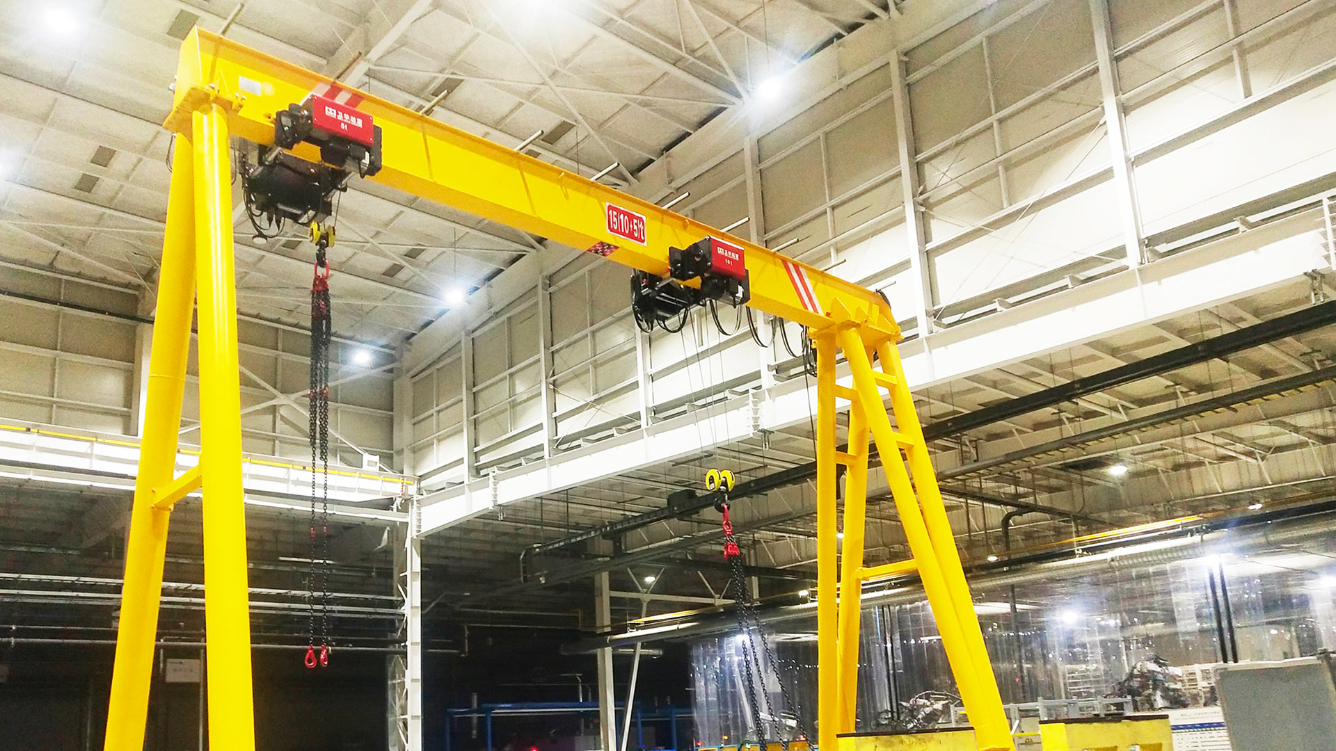 电动葫芦单主梁门式起重机是我司以新中式低净空电动葫芦为起升机构开发的门式产品,具有性能优越、安全可靠、节能高效和低噪环保等优点,适用于车间、仓库和电站等无法安装桥式起重机场所物件的吊装及搬运。